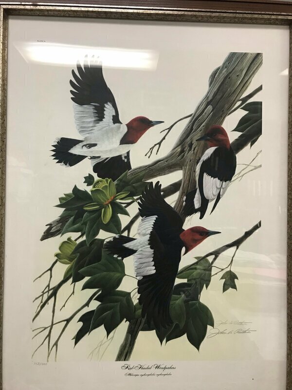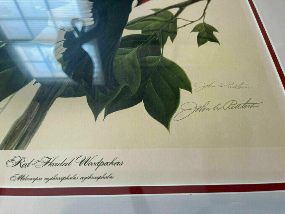 *** Framed, limited edition lithograph by wildlife artist John A Ruthven, **** Mr Ruthven, a naturalist, author, lecturer, and internationally acknowledged master of wildlife art is often called the “20th Century Audubon.” Ruthven uses the same techniques as his famous predecessor. *** After studying and researching his subject thoroughly, he sketches to rigid specifications then renders the original painting with great detail.John remembers growing up in Walnut Hills and making his way to the banks of the Ohio River, dreaming about the birds John J. Audubon painted more than a century before. *** Even as a boy, Ruthven’s dream was to become influential in preserving wildlife through art. “I continually took my sketch pad with me wherever I went,” Ruthven recalled. He went on to paint a brilliant career that has earned recognition from the highest. *** After serving in World War II, he entered the Cincinnati Art Academy. He opened a commercial art studio in 1946 with the goal of building a career in wildlife art. In 1960 he entered the Federal Duck Stamp competition and won with his Redhead Ducks. **** In 1971 Ruthven founded Wildlife Internationale`, Inc. to publish and distribute his limited edition prints. Ruthven was recognized as Duck`s Unlimited First Artist of the Year, First Ohio Duck Stamp Artists, and First Ohio Animal Stamp/Print Artist. *** In 1994 Ruthven was honored by the Cincinnati Museum of Natural History with a major retrospective exhibit displaying 100 of his most important works, including “Eagle to the Moon,” commissioned by former Gov. James Rhodes to commemorate the achievements of astronaut Neil Armstrong. *** His paintings have been included in acclaimed exhibitions such as The Artist of America Exhibition in Denver, Colorado and the Society of Animal Artist, a traveling museum exhibition included at the Hiram Blauvelt Art Museum in Oradell, New Jersey. ***